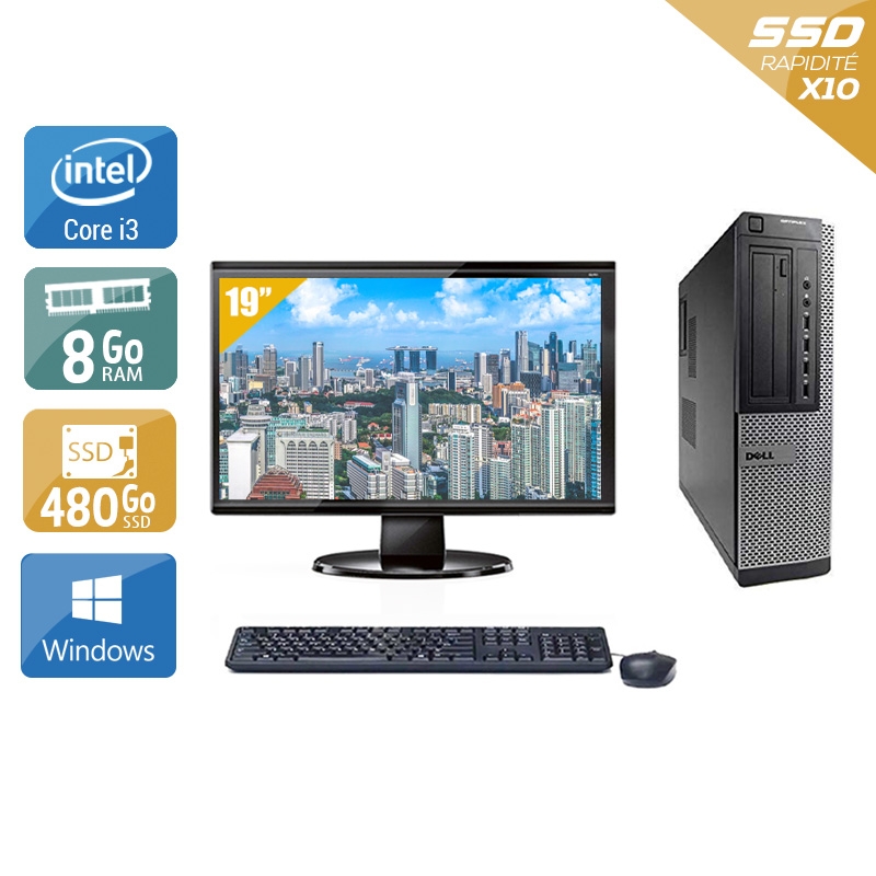 Dell Optiplex 9010 Desktop i3 + Écran - 19" 8Go RAM 480Go SSD Windows 10